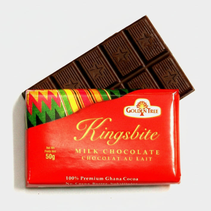 Indulge in Golden Tree Kingsbite 50g, a rich and velvety milk chocolate crafted from premium Ghanaian cocoa.