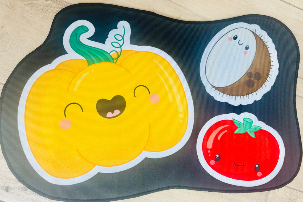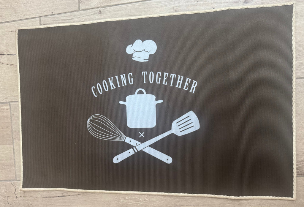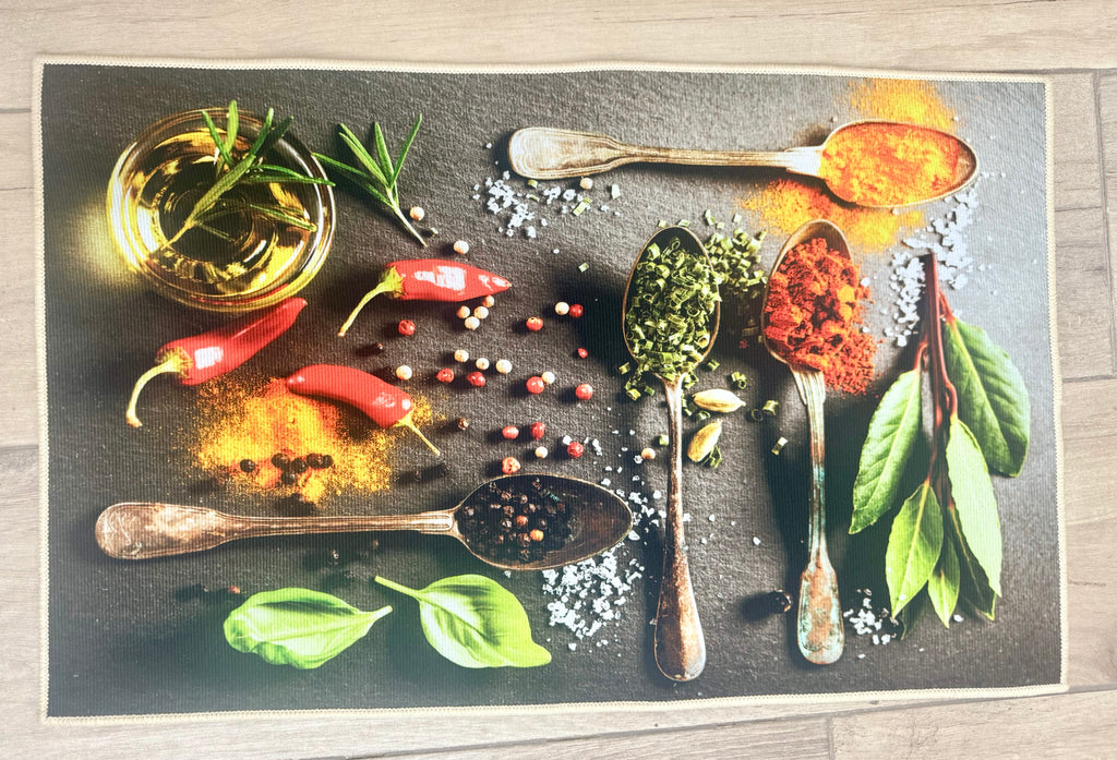 2 pc  Kitchen Mat with Food & Letter Design – Anti-Slip, Machine Washable Polyester Floor Mat