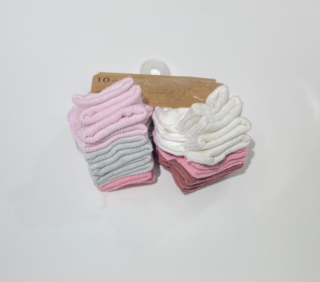Non-slip baby socks in a 10-pair pack for infants aged 0 to 6 months.