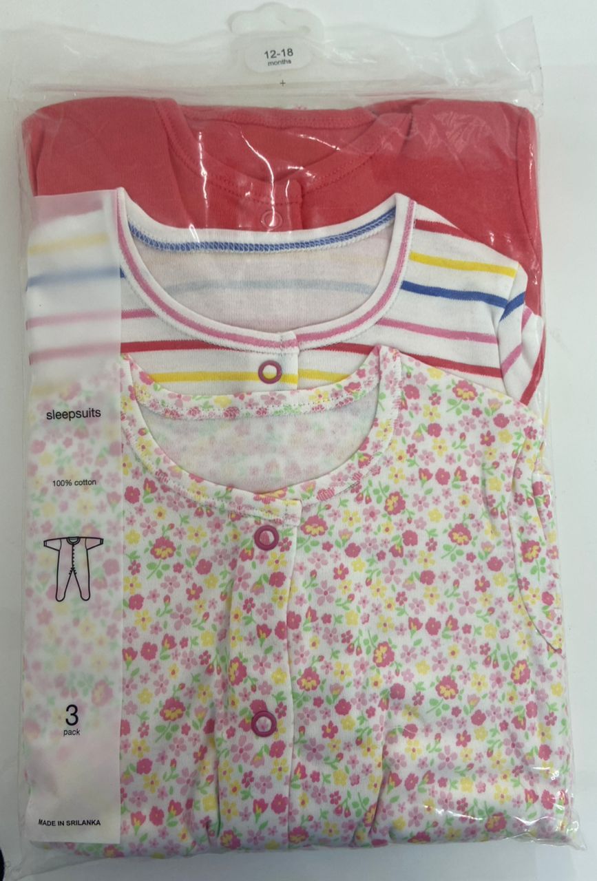 Keep your baby warm and cozy with this pack of 3 long sleeve sleepsuits designed for 3-6 months old.