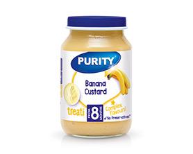 Purity Banana & Custard (200 ml) is a textured baby food jar, combining a smooth custard base with real banana puree. It's crafted to support chewing and speech development in infants, regardless of whether they have teeth